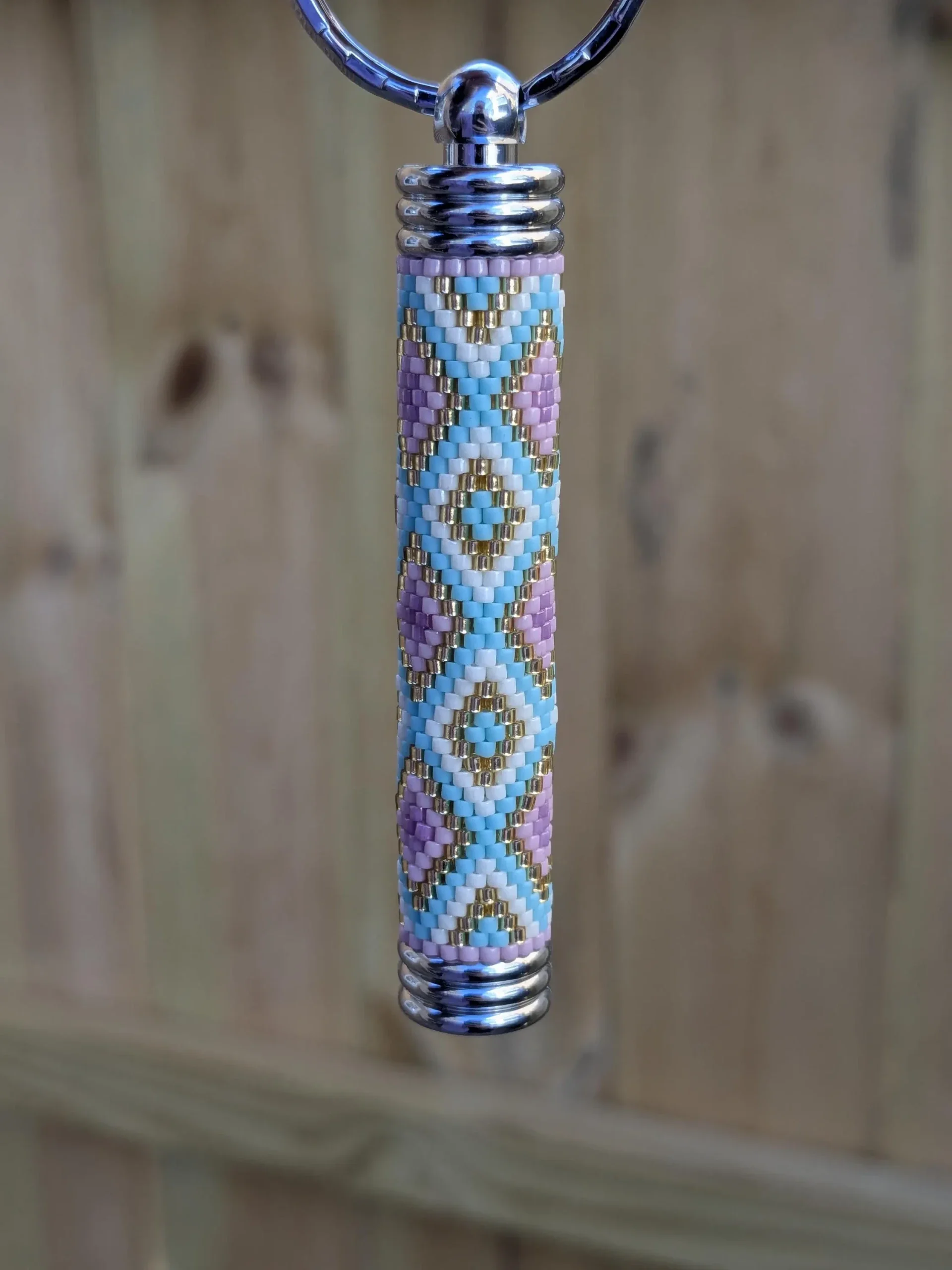 Pink And Blue Peyote Beaded Hidden Compartment Keychain